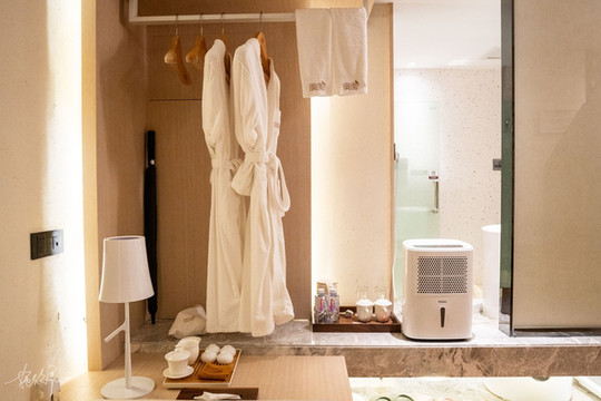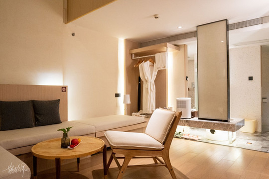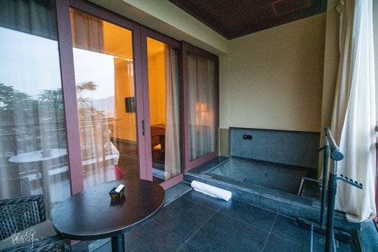 我们有一晚就住在溪山温泉度假酒店。我们的房间里自带温泉池,一天的疲惫过后,泡上一个温泉实在太舒服啦。