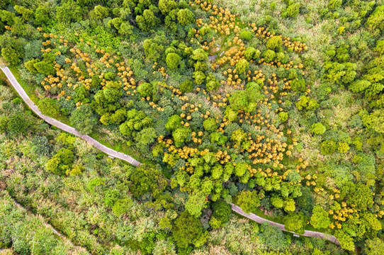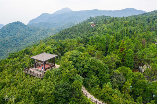 柱里景区有一整条的木栈道,依山而建,我穿行在树林间,登高望远。山上有好几处观景台都可以远眺眼前的山景。现在已经习惯了带上我的无人机充当我的第三只眼,以上帝视角看这个世界已然成为一种习惯。耳边山谷里清风徐来,呼吸着清新空气,手机屏幕上显示着几十米外无人机传回来的柱里风景,湖光山色,十分养眼。