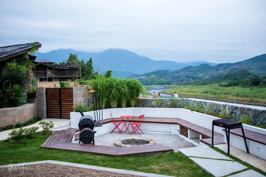 改造好的三落厝几乎每间客房都有自己独立的小院,很大程度上入住的私密性保护得很好。整座三落厝的正前方就是宽阔的大草坪,不管是晴天雨天,都是不一样的感觉。