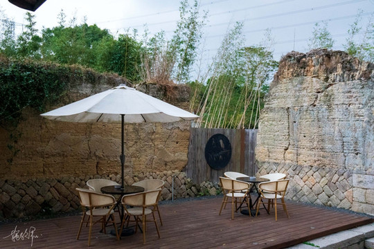 既然是度假酒店,那么酒店就不应该只有酒店,走在错落有致的三落厝正片区域里,都恍惚有种 京都 的建筑感,商铺、展厅,最有感觉的当属居酒屋的招牌。