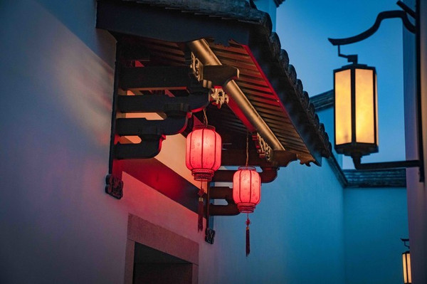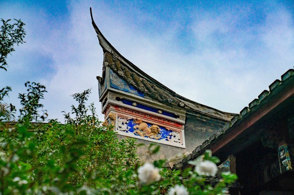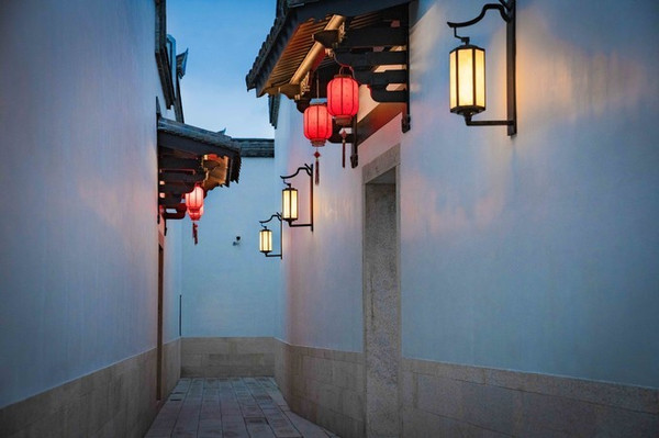 在三坊七巷的一片灰瓦海洋里,座座民居的重重风火墙好象此起彼伏的波涛,声势壮观。特别是在掌灯时分,更是绚烂无比,蓝的天,白的墙,红的灯,让人目眩神迷,不禁赞叹,好一副诗情画卷,好一番弄里画廊!