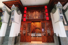 进入林则徐纪念馆,屏墙左右两边的石拱门上,横额分别为“中兴宗衮”及“左海伟人”。祠门外围屏墙内壁有浮雕 虎门 销烟图,大门上额刻着“林文忠公祠”,仪门两侧回廊陈列了20多面执事牌。 仪门厅后有石道可以直达御碑亭,内有光绪三十一年立的道光三十年“圣旨”、“御赐祭”、“御制碑文”等3块青石碑。御碑亭的北边为树德堂,里面有林则徐坐像。树德堂的西面为南北花厅,厅的西面有两层的曲尺楼,原为林家子弟读书的地方,楼前有草坪、 鱼池 、假山、花木等。 全馆为古典式园林建筑,现如今,堂、厅、楼均辟为林则徐生平展室,分林则徐生平事略、林则徐与鸦片战争、林则徐与救灾、水利,放眼看世界第一人、林则徐手迹等部分。