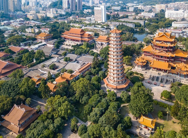 西禅寺,唐咸通八年重建,定名为“清禅寺”,后改" 延寿 寺”、“怡 山西 禅长庆寺”俗称“西禅寺”。寺内有天王殿、大雄宝殿法堂、藏经阁、玉佛楼及客堂、禅堂、方丈室等大小建筑38座,占地7.7公顷,还有唐七星井《唐 福州延寿 禅院故延圣大师塔内真身记》碑、五代慧棱禅师舍利塔、 清康 熙御笔《药师经》、清代壁画等。