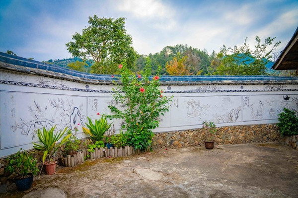 入口为鹤嘴,弯弯曲曲的小路是仙鹤的脖子,筑墙的卵石象征仙鹤吃的米,以保家乡父老的富庶。在仙鹤的嘴部修建了一座书斋,寓意莘莘学子的读书声,好似仙鹤所发出的鸣叫。