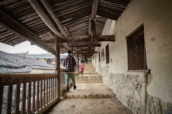 院内楼上,也即是女主人介绍的二楼,通俗称为跑马道。四周有宽约1.5米的战备 通道 ,且沿墻垛设立瞭望观察窗十几个和上百个防枪眼(这是旧时山区农村富豪为防劫匪攻寨堡抢掠而设),可谓未雨绸缪,安防在前,森严壁垒,易守难攻。且跑马道一圈都有几十间房屋,应该就是给当时的兵丁住宿。不得不赞叹,这真是当时的大户人家啊!