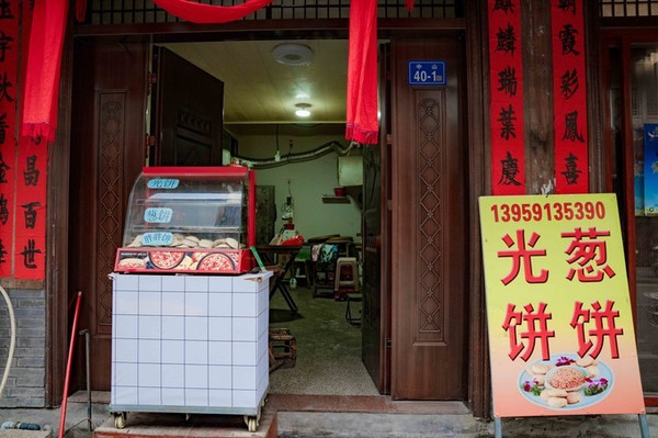 嵩口古镇有一家葱饼超级好吃,我们无意间发现的,当时看到本地居民在购买,就试了一下,这一品尝瞬间就让人爱上了,在嵩阳广场到古镇的路上,不在古镇里面,店名忘记了,但味道记得,咸饼里面的馅料很像我们的杂酱肉沫味道,甜饼里面是豆沙之类的馅料,没有咸饼好吃。