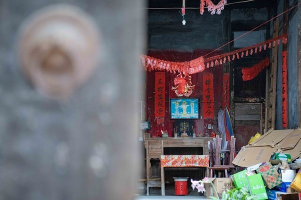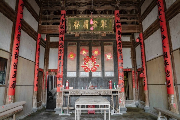这座干厝让我印象很深刻。古朴的木门和铁环,半掩的开着,伸头进去看看,有着宽阔的花厅和古老的桌椅。门口有个小卖部,女店家正在穿针引线,缝制着什么东西。跟她聊了几句,得知她就是干氏后人,第几代传人她也没说清楚,女店家的普通话基本听不懂,全靠猜。她开了个小卖部,每天维持着简单的生计,问她想不想卖掉这个古厝,她说卖掉了没地方住。