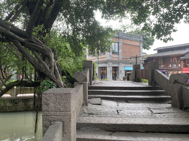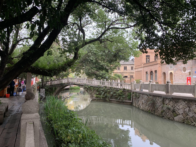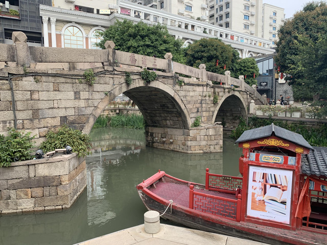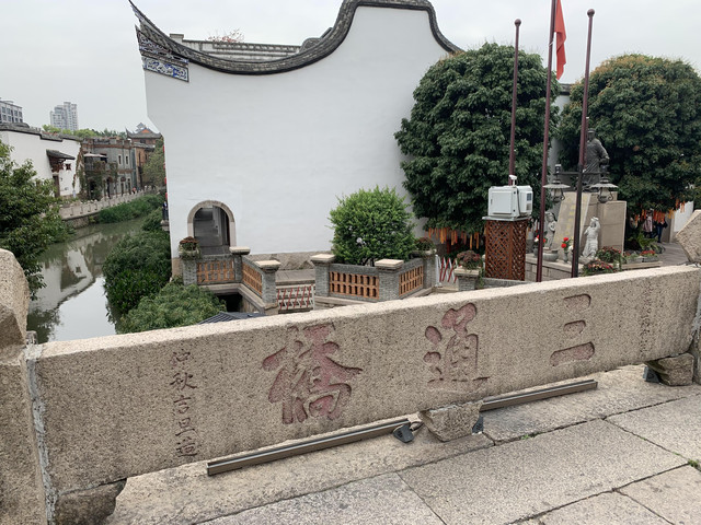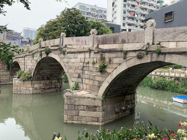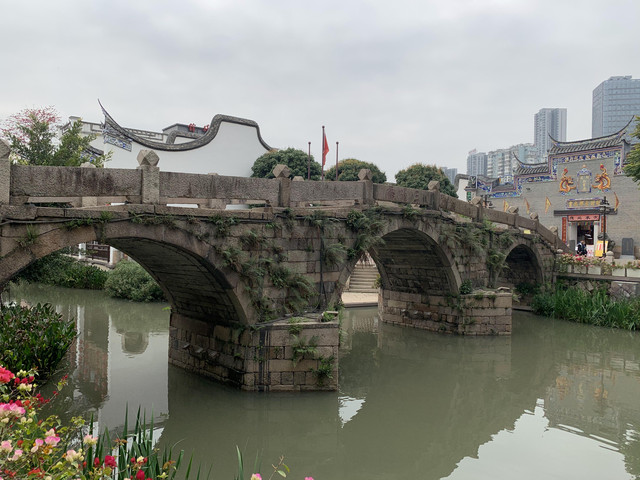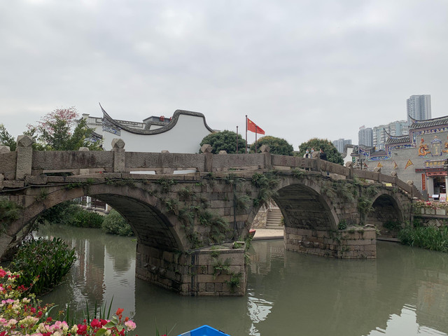 过了中洲岛往左是上下杭,远远就看到了标志性的三通桥,这里曾是古河道渡口,是福州重要的货物集散地、商贸和航运中心,闽江水绕过,上下杭是上下航的津口埠头,“杭”即“航”衍化而来,三通桥的三通谓之东通小桥,西通三保,南通新桥仔,现在的桥是后来按照原样、用原材料复建的。