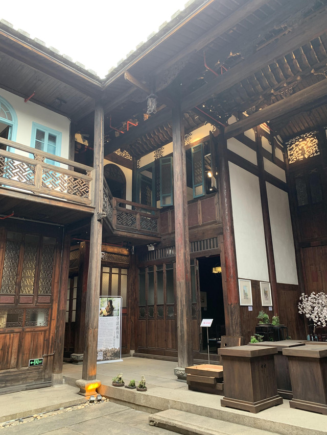 慢慢走着,细细品味,古田会馆、永德会馆、建宁会馆、南郡会馆、闽清会馆、福州市工商联合会、张真君祖殿等老建筑见证了这里商贸的发展和变迁,散布在街区里的古建筑或飞檐翘角、雕梁画栋,或典雅别致,巧夺天工,有些建筑中西合璧,却也融入其中,看不出违和。但是整个景区也是还在修建,一半遮挡着,不太明白这么古老有价值的文化区域为什么没有早早保护起来?现在才开始修整,感觉有点慢一拍。或者是因为福州的历史街区太多?如果在其他地方,可能一个古老的地名就足以建设一座仿古城了吧?