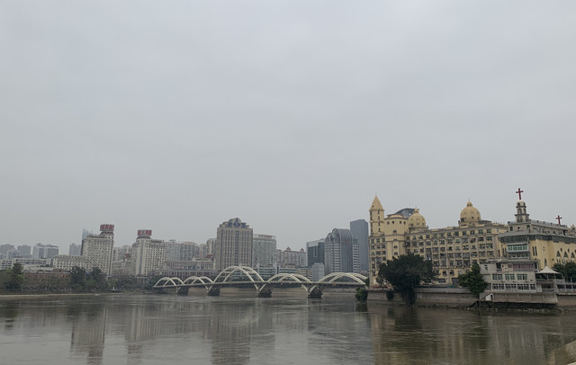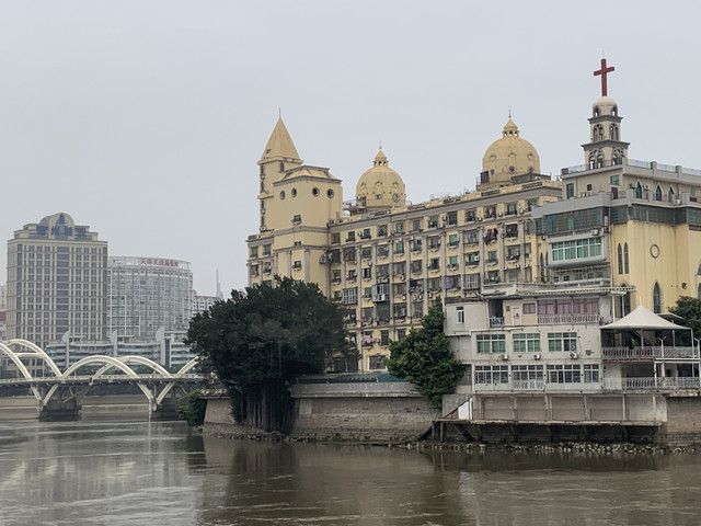 原路返回,从仓前路去烟台山对面的中洲岛,中洲岛是泥沙淤积出现的沙洲,岛上面建有教堂,实际走过去感觉除了教堂外其他建筑都是后建的仿欧式建筑,有些烂尾楼的感觉,闽江北港的水也不大,海鸟非常多,飞来飞去地觅食。