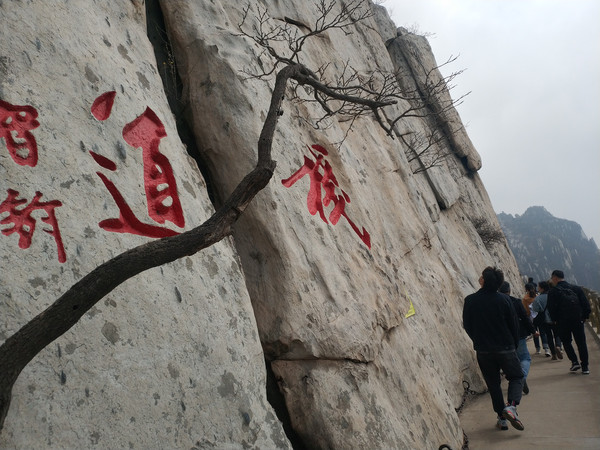 虽然没有下雨,但雾气弥漫,有很多当地村民在兜售雨衣以防湿气打湿衣衫,我们随着游客沿着不宽的盘山公路一路上行,大约4公里路程。也有不少游客沿着石阶路攀爬上山,石阶路程比盘山公路短,大约2公里,但比较陡峭。
