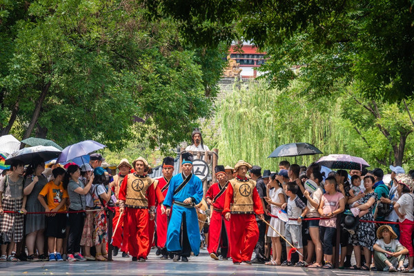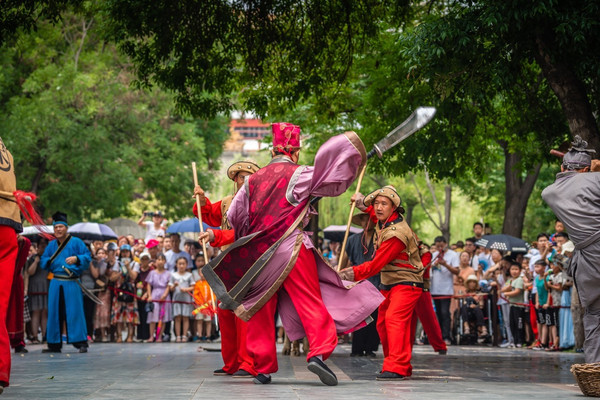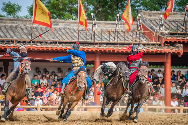上下午各有一场的【岳飞枪挑小梁王】是清园内不可错过的好戏,所以早早的就来到校场占位置,场上军马嘶鸣,原来这里正在举行大宋朝一年一度的武举人考试。