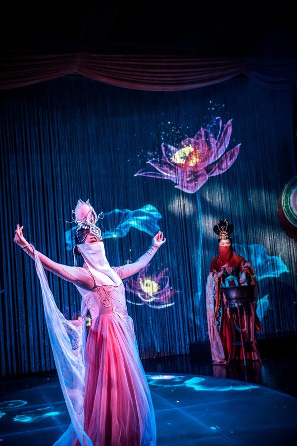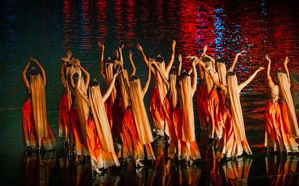 一开场,当《虞美人》的词响起,“春花秋月何时了,往事知多少……”一朵海上漂来莲花载着五位大宋朝数一数二的舞师款款而来,配合音乐的节奏,跳着霓裳舞,那强烈的视听冲击力就把我深深的震撼到了。