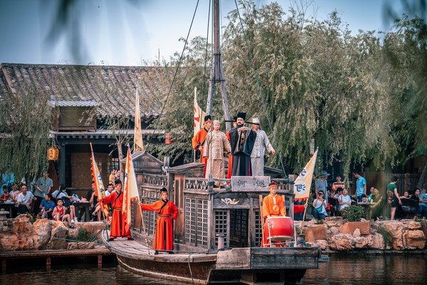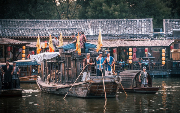 运河上有几处码头,如果是居住在园区之内的驿站或是满庭芳,可从金水门进入,乘坐摆渡船到此处的码头上岸,办理入住。