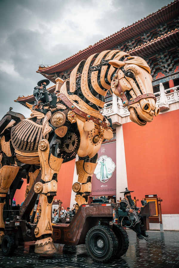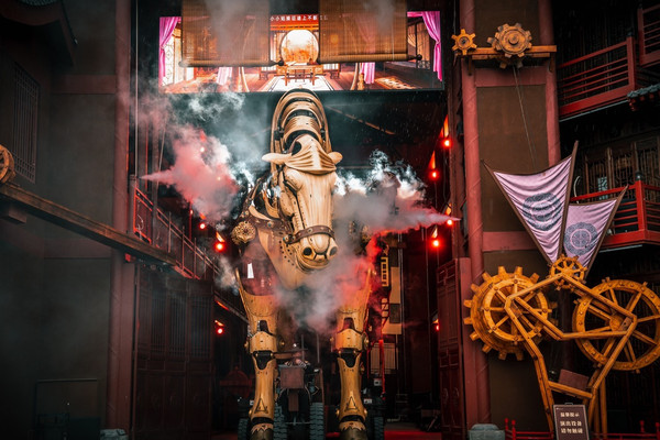 还有一位抗金英雄来源于清园自创的的故事--【神马历险记】,分为复活和出征两个篇章,分别在上下午表演,讲述的是木匠之女小菊儿和神秘乞丐复活了巨型神马去拯救被金兵掠走的父亲的故事。