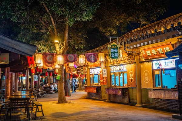 先说小吃云集的【东京食坊】,它位于汴京大街的主干道上,是整个清园最为热闹的地方,南来北往的宾客都会经过这里,所以不管日夜都是人流如织,宾客盈门,那些大宋朝的手艺人就聚集在这里,争相叫卖着自家的美食。
