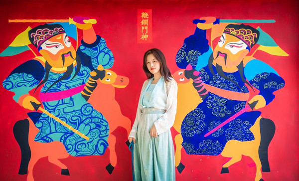 然后清明广场到虹桥路上的门神壁画,特别适合用来作为人像背景。