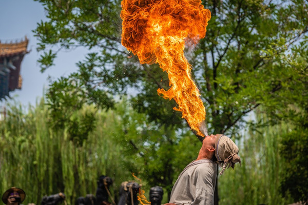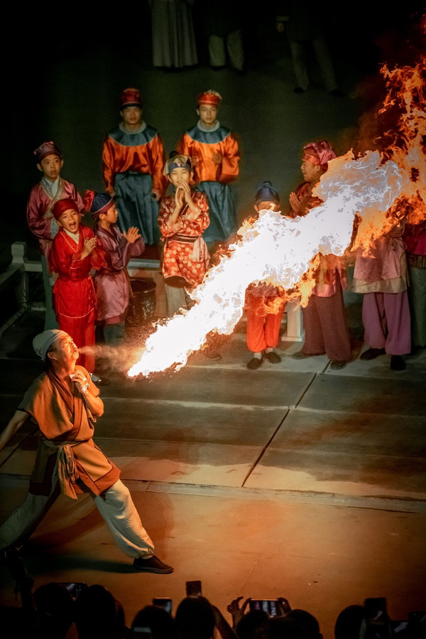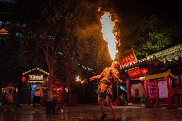 在王员外家楼下,每晚19:30还有一场口吐火龙表演。