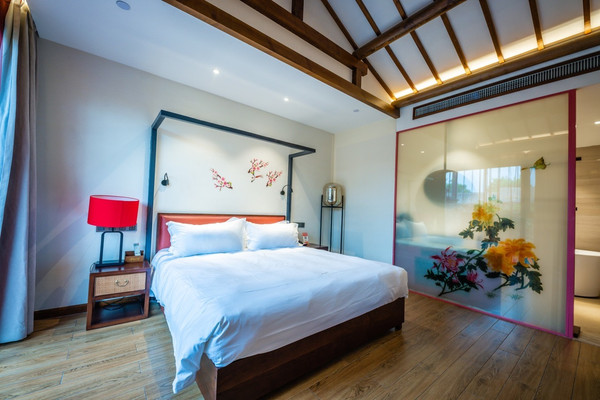 三两枝梅花配一首宋词,睡在这样清雅的环境里,倒也神清气爽。