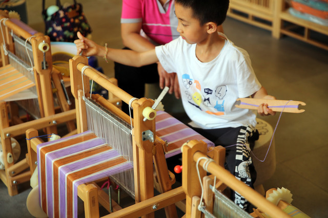 这里还有织布非遗项目可以沉浸体验,让小朋友感受到劳动的力量,古人智慧的非凡。