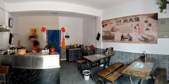 中午吃得肉夹馍跟凉皮,小镇上得肉夹馍上正宗老潼关肉夹馍,馍饼是一层一层的那种千层饼,卤肉也很入味,一口咬下去多汁不腻,男生一口气吃俩都没问题。