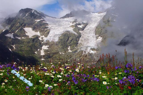 遗憾的是,我们当天并没有看到这些珍贵的保护动物,反倒被高原野花给惊艳到了,尤其是前往卡孜别克山口的路上,到处是成片成片的野花,按照向导的说法,这些野花有相当一部分可以入药,也是当地人最爱的染布颜料之一。