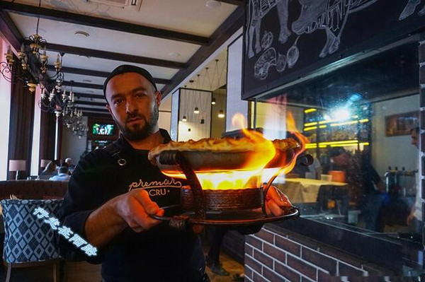 为了更彻底验证南奥的物价,我们特地选了一家格鲁吉亚餐厅,点了最贵的硬菜:500卢布的羊肉大烤饼。