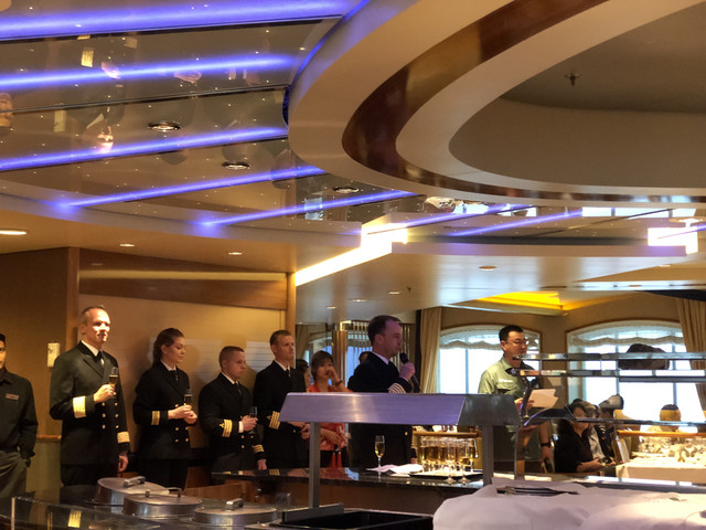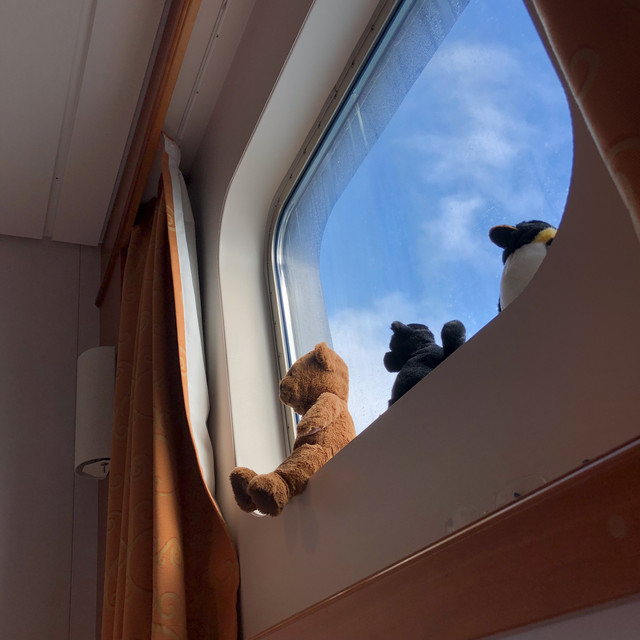 登船入住后,船方发放了冲锋衣,并组织了强制性安全演习。上了船便基本是与世隔绝了,当然,也可以购买流量套餐,不过据说网速很慢,仅能编辑少量文字,其他的就别想了,我们没买,所以具体怎样我们也不清楚,另外就是船上的卫星电话了,不过这玩意儿只有紧急情况下才会用到。上船后会收取护照,发放房卡,所有消费以房卡为准,下船后会统一结算。之后便是欢迎晚宴,船员和探险队员依次做了自我介绍,并预祝本次旅程顺利。