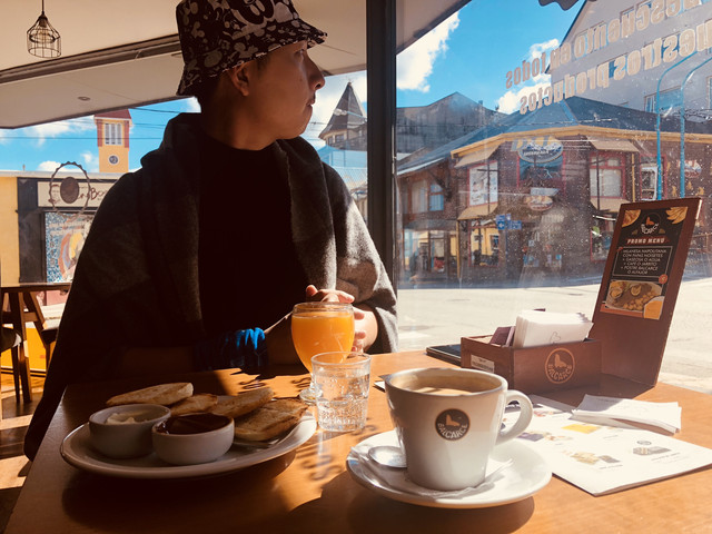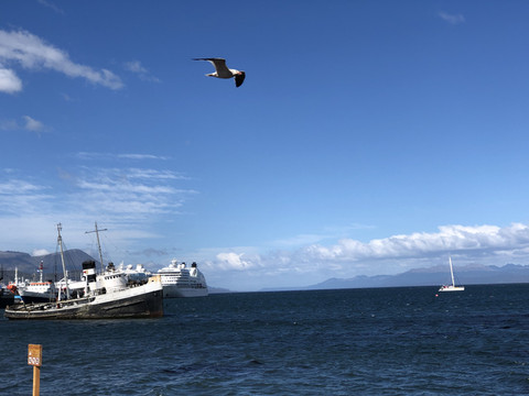 午夜阳光号缓缓的驶入了比格尔海峡,乌斯怀亚也渐渐的出现在了我们眼前,不过由于风浪太大,码头不允许我们靠岸,直到午餐过后我们才成功下船,而我们原定返回布宜的航班也由中午改签至傍晚,因此我们意外的多出了半天的时间,可以再感受一下这座独特小城。点一杯咖啡、来一份下午茶、吃一个冰淇淋甜筒,漫步在海边与城中的街道,静静的感受这个人类文明的边陲之地。轻轻的我走了, 正如我轻轻的来; 我轻轻的招手,作别西天的云彩。