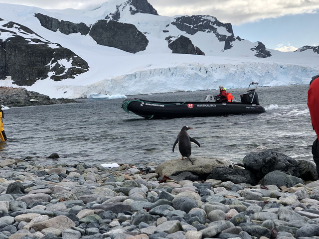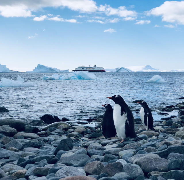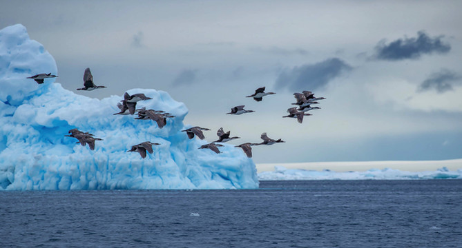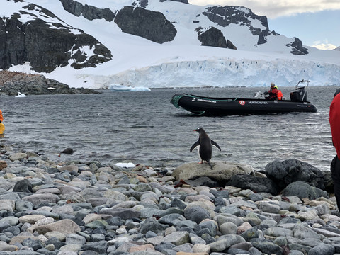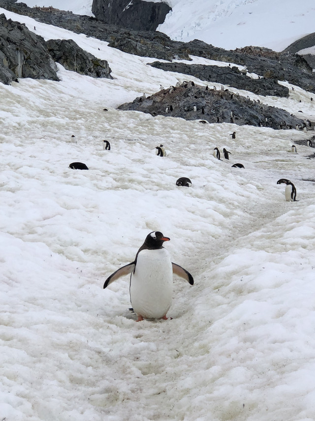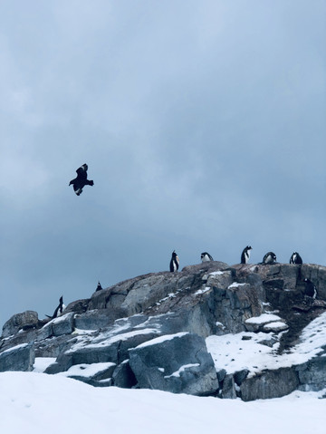 上午在埃雷拉海峡进行了一次巡游后,便直奔天堂湾。天堂湾名副其实,可谓是南极半岛最美的地方,高耸的雪山、巍峨的冰川、静谧的海面已足够让人震撼,但当你看到成双的座头鲸游向水面又潜入水底、成群的金图企鹅霸占了阿根廷人的科考站、列队的蓝眼鸬鹚飞过海面又飞过冰川、落单的海豹在浮冰上伸着懒腰时,你就会明白,这里是我们的天堂,更是它们的天堂。