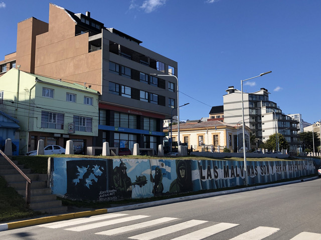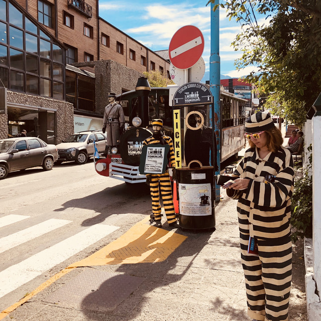 一早,船方的大巴把我们带到了机场,3.5的小时的航程后,终于到达了世界的尽头-乌斯怀亚。虽然是南半球的夏天,小城还是有点微寒,因为还不能马上登船,我们便有了时间闲逛。这个城市原来是流放犯人的地方,而现在却成了人们流放自己的地方。