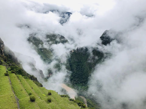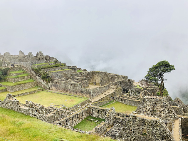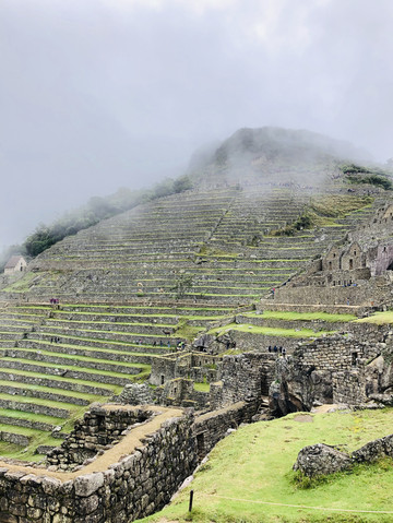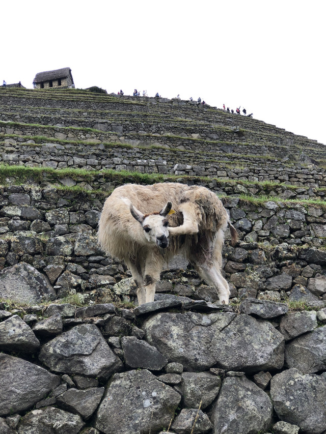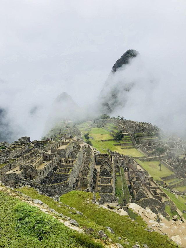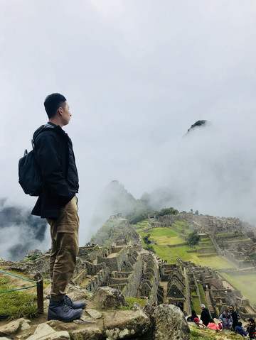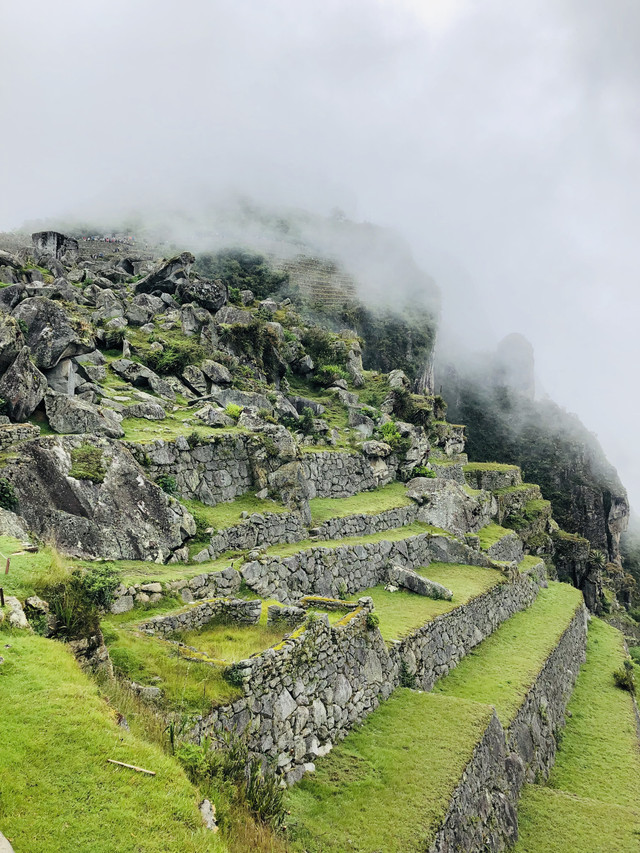 马丘比丘海拔2400多米,从热水镇需要一段爬升的山路才能到达,一路上七拐八拐的终于到了。进入景区后,需要按照指示箭头前进,不能走回头路,里面还有很多散养的羊驼在四处游荡,整个游览下来要2个小时左右吧。如果还有多余的时间和体力,还可以选择攀爬华纳比丘,也就是照片里被云雾遮挡的那座山丘。为了驱散云雾,我们和很多游客一起自发的向同一方向吹气,吹完气后,大家又都笑成了一团,哈哈,这样的时光总是会铭记心底的。