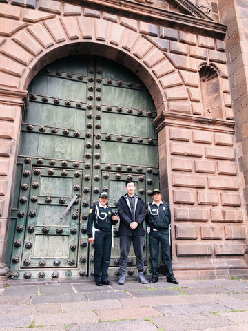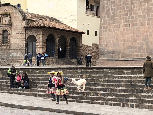 在南美洲国家,几乎每一个城市都有一个中心广场,在这里聚集了城市里最重要的教堂和一些具有历史意义的建筑,人们喜欢在广场中心的长凳上休息,跟陌生人聊天,喂鸟,看书,发呆。在库斯科,这个广场就是武器广场。广场上还有牵着羊驼的当地人,在找我们这样的外国人拍照合影,不过警察一来就都跑了。