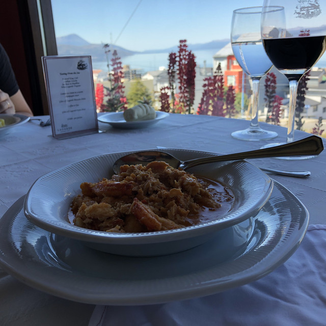 这是一家不错的法餐厅,不过食材都是本地的,帝王蟹非常正宗。餐厅在半山腰上,需要一直走到小城的快最上面了。