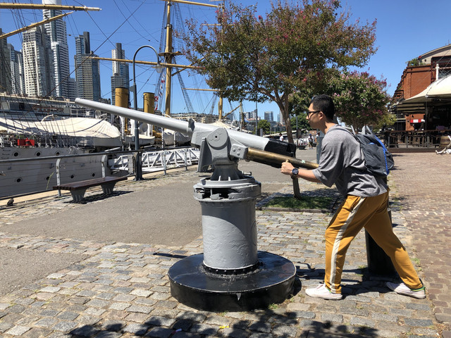 女人桥是一座白色斜拉桥,全长160米,它的造型看起来像一条鲨鱼的形状,但其实是要表现一对在跳探戈的男女的造型。岸边有一艘老式帆船军舰,被改造成了一个小型水上博物馆,旁边陈列着几门舰炮,彰显着老西班牙帝国曾经的荣光与新阿根廷共和国昔日的辉煌,而今都已作古。马德罗港还有各式各样的餐厅,我想只有夜晚才是这个地方生机勃勃的时刻吧。