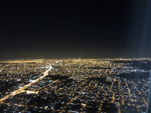 因为集合时间是在四号,所以为了以防万一,我们三号便来到了布宜。在飞机上,看到了被安迪斯山脉阻挡的云海,有云的地方是阿根廷、没有云的地方是智利,这条山脉阻挡了大西洋的潮湿气流,在南美洲南部这条狭长的区域,造就了两种不同的气候类型。智利干旱少雨,阿根廷水草丰美,地理决定论也有一定的道理的。在飞机快要降落时,被布宜诺斯艾利斯的城市夜景惊到了,没想到布宜居然那么大,感觉比之前到过的任何一个城市都要大,飞机在城市的霓虹上飞了好久,城市的灯光一眼望不到边。到达酒店时已是当晚11点,便很快休息了。