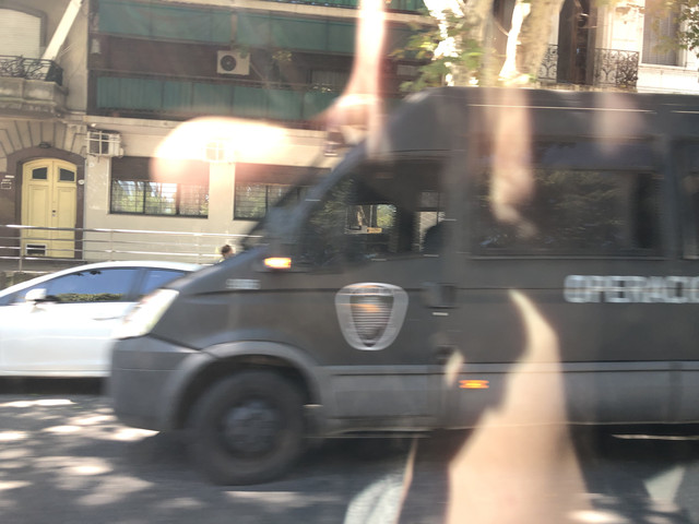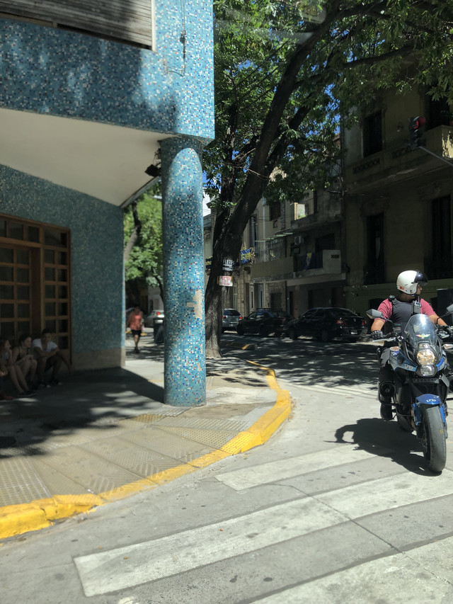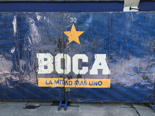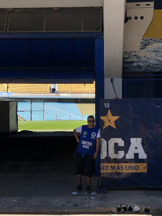 在酒店大厅坐了半个小时后,决定叫车去机场,不过在回住处取行李的路上,我们还是不甘这剩下半日的时光就如此浪费在机场,于是我们在出租车上决定了一个说走就走的地方-博卡街区。虽然我们不是足球迷,但博卡的名号还是响当当的,想想现在老马球王也离世了,2020真是让人唏嘘。博卡街区的治安很差,再经过刚刚的“泼粪党”,我们决定不再徒步游览,而是包下了出租车,让司机先带我们去博卡,再送我们去机场。司机大叔非常nice,虽然我们互相听不懂对方,但靠着手机翻译,我们的沟通过程还是很愉快的。这下有当地人加持,而且我们也不乱跑,肯定会安全很多。当晚还有比赛,球迷和警察早就严阵以待,因为在车上所以拍的不真切,但那种大战前的氛围却是能实实在在感受到的,阿根廷不愧为足球王国。