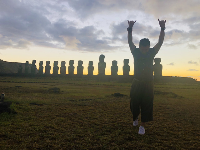 复活节岛北部的阿纳凯海滩是全岛最富魅力的景点,除一排威武的“moai”巨人石像外,一片白色的沙滩又长又宽;岸上的棕榈树林青翠茂密。位于阿纳凯海滩的阿胡汤加里基是复活节岛上石像最多的区域了,最佳观赏时间是日出的时候,在天还没亮的时候从安加罗阿出发大约不到半小时可达。旁边有个小停车场,门口有两个当地工作人员会查票,这个地方只能来一次。接下来就静静的等待日出好了,太阳刚出来的时候个人感觉并不是最美的时候,而是在日出大概半小时后最美。可以绕着石像走一圈,石像是背朝大海的。离着不远处大概开车几分钟就说采石场,可以在看完日出后一并游览了。我们当天并没有一并游览采石场,而是回去休息后,选择了傍晚的塔海石像。