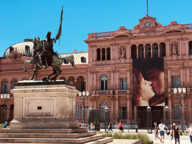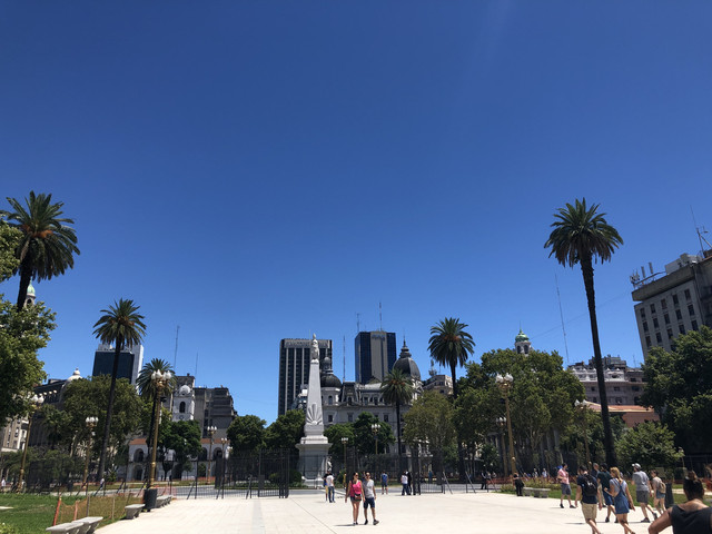 女人桥与五月广场间的路程大概有1公里,道路宽阔,中午的行人虽然不多,但旁边就是总统府,广场还有大量巡逻的警察,我们怎么也想不到竟然在这段路上遇到了“泼粪党”。在就快要到达五月广场的一个十字路口,我们正准备过马路,这是突然一个当地男子向我们借烟、借火,我们礼貌的回答我们不抽烟所以没有烟和火,他笑了笑,问了一句“你们会说西班牙语么”,我们回答“不会,只会英语”,然后他向马路对面大喊了一声后便径直离开了。这时,绿灯亮了,斑马线上迎面走来一个华人面孔的男子,他不时的看着我们又望向身后,而后也快步离开了。这时的我们也只是觉得不太对劲,虽然对阿根廷的治安已有耳闻,但是总统府的旁边也敢造次?心里想着的同时,腿上也不自主的加快了频率。就在我们刚过了路口的同时,感觉天上掉起了水滴,抬头一看-艳阳高照,再低头一看,身上不知怎的,多了些棕色的点点,而身边突然出现了三个人,说着我们听不懂的西班牙语,硬要把手里的纸巾塞给我们。。。此时的我一阵头皮发麻,心想:坏了!这“泼粪党”居然让我们在这给遇到了,这群人偷不成便会抢,怕不是今天要栽在这儿了。心里虽然发慌,但一定不能表现出来,不然更完蛋!我们一边把背包背到胸前,一边加快脚步脱离与他们的接触,就这样拉扯了十几米后,他们没有再追,而我们也没敢回头,径直走向广场,直到看到了警察,才长舒了一口气。现在回想,那个要烟的应该是个探子,那个华人应该是知道他们要干什么,至于后来那三个人为什么没有继续追我们甚至抢我们,那就不得而知了,或许是我们警觉的把包背到了胸前、或许是因为我们还算人高马大、或许是离广场上的警察太近了,总之,我们算是幸运的。或许有朋友会问那到底是不是大粪,我可以很负责任的告诉大家,那不是大粪,只是一种颜色像大粪的染料,只到现在我的那条裤子上还有洗不掉的印记。
