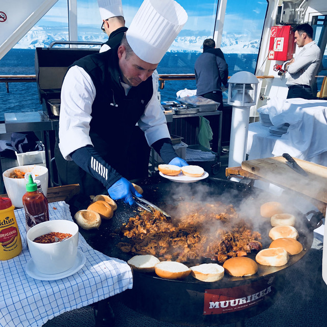 航行在杰拉许海峡时,天气晴朗,一路风景独好。船方还贴心的在甲板上准备了烤肉,让我们既享了美景、又享了美食。