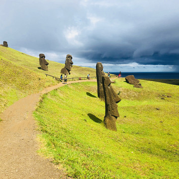 拉诺·拉拉库采石场应该称之为moai工厂,这座工厂坐落在岛屿北部的半山腰上,距离阿胡汤加里基非常近,里面或矗立或散落着各种已成型的、未成形的moai,惊叹于当时的波利尼西亚人,在太平洋上劈波斩浪来到此处,以岛屿上极为有限的资源、人力完成了如此令人惊叹的工程,但另一方面,这种竭泽而渔的发展方式也终至岛上的文明几近毁灭。对于人类最终能从这里学到什么,这涉及到的学科太多,我们也不敢妄加揣测,只希望警钟长鸣吧。