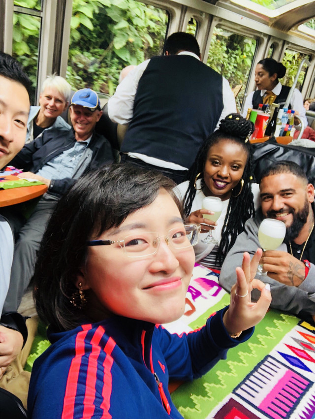 经过2个多小时的颠簸,终于到达了欧雁台,再从这里换乘火车。火车上的环境很棒,巨大的天窗视野清晰,让旅途的疲惫一下一扫而空。一路上,我们和对面的一对小情侣还有一对老夫妻聊了起来,我们互相分享着各自旅途上的见闻以及家乡的故事,从与小夫妻的交流中,我们得知他们来自加勒比海的一个岛屿-圣马丁,最近还遭了台风,得益于我还不算丰富的地理知识,我表示我知道这个地方,结果他们居然很惊讶,便立刻与我们攀谈了起来,看来知道这个地方的人是真不多,圣马丁这个地方是世界上最小的分属两国(法、荷)的岛屿,它的机场很出名:茱莉安娜公主国际机场,有兴趣的小伙伴们可以查查看。看来多学点知识对聊天还是很有帮助的,哈哈。另外一对老夫妻来自澳大利亚的珀斯,珀斯是西澳最大城市,粉红湖相对比较出名。我们也向他们分享了我们之前的一些旅行经历,也希望他们有机会可以去中国看一看。
