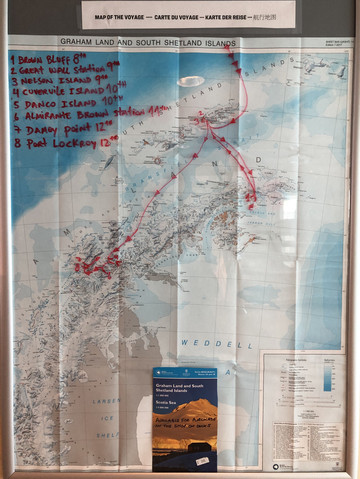 经过一昼夜的颠簸,船上大部分人都像霜打的茄子一般,前往餐厅就餐的人也明显少了大半,船方贴心的给游客们准备了青苹果和饼干,同时也可以在前台购买晕船药。今天领取了登陆靴,并参加了强制性 IAATO 及登陆艇安全简报。