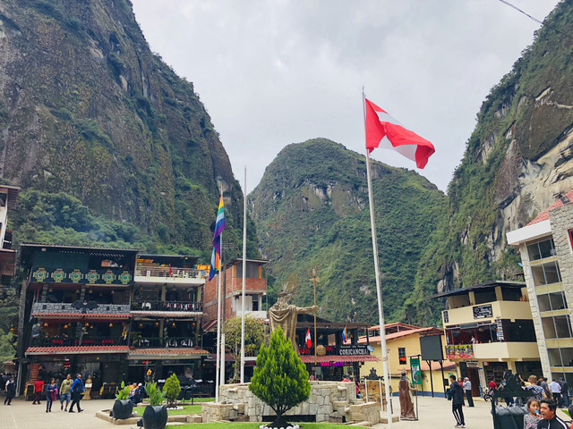 热水镇是马丘比丘的门户,是马丘比丘山脚下的一座超小的镇子,不管你愿意与否,只要你来马丘比丘,就必然躲不开热水镇。镇子上基本就是住宿餐饮商店之类的,出了火车站会经过一片卖纪念品和特色物品的小市场,羊驼类制品比后来在机场看到的便宜不少。镇子里面有个小广场,可以逛一逛歇个脚,还有一个正规的足球场,南美人真是爱足球。买票、等大巴的地方都很明显,巴掌大的地方,路痴也不容易迷路的。记得提前买好第二天上马丘比丘的大巴票,不然到时候就得徒步上山了,那山路十八弯的,估计得走到天黑。
