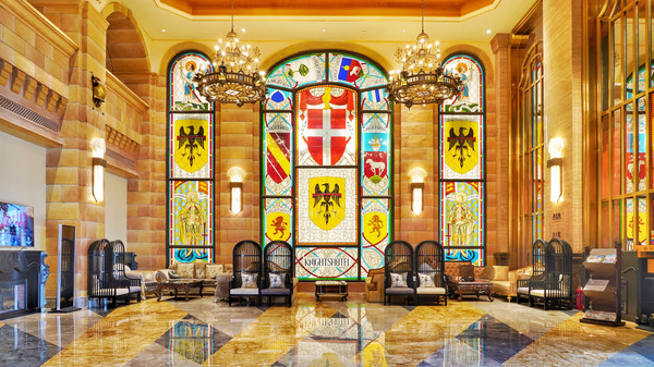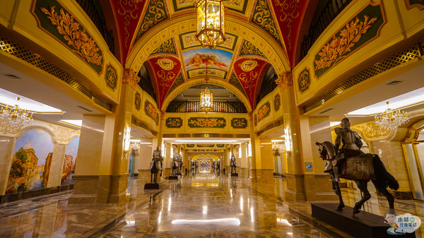步入酒店,这里几乎每一角落里都彰显着骑士文化,酒店遍布大量的骑士雕塑、绘画、纹章、盔甲、旗帜,以更多的巨幅画作描绘骑士授勋、欧洲贵族聚会和生活等具有代表性的场景,不仅展现了欧洲古典艺术酒店恢弘华美、高贵典雅的格调,更是注入中世纪骑士文化的精髓。让我们入住的同时,也更多的了解骑士文化。