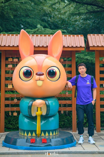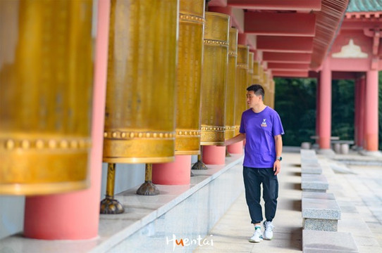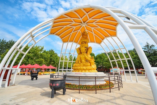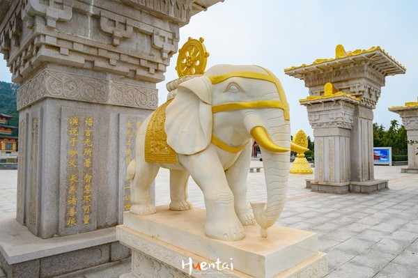 景交车的最后一站是药师玉佛殿,在走进佛殿前可以路过一座财神殿,相信很多年轻人和我一样对“财神”十分感兴趣,我在这也拍了很多照片,大殿前方的道路两旁竖立着十二生肖的卡通形象,非常好看。