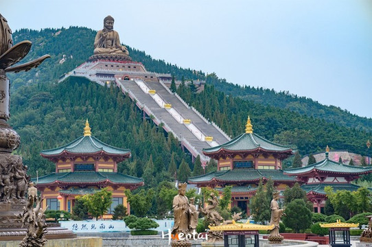 南山旅游景区是一座国家5A级景区,买票进入以后可以游玩宗教文化园和历史文化园两大部分。进入景区买了交通车票,第一站来到的就是南山禅寺。进入寺门,沿着景区的游览路线一直往前走,可以走到大佛的位置。这座大佛是世界最大的锡金铜坐佛,高38.66米,重达380吨。它也是南山旅游度假区,乃至龙口市的地标建筑,十分震撼。