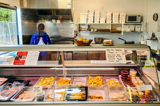 这家小店虽不起眼,却散发着一种质朴的吸引力。推开门的瞬间,炸鱼的香气扑面而来。炸鱼薯条中的鱼,通常选用新鲜的本地海鱼,其中蓝鳕鱼因肉质鲜嫩、口感细腻,尤其受欢迎;薯条则是厚切的土豆条,外酥里嫩,堪称炸鱼的最佳搭档。