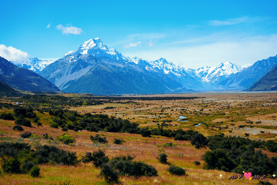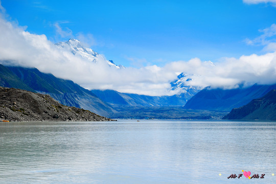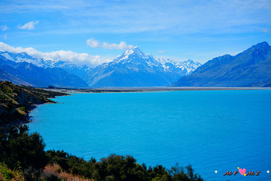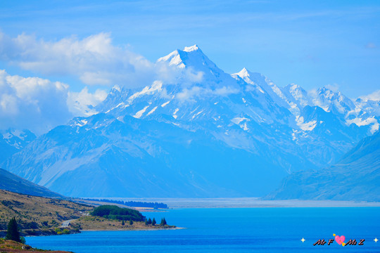 作为公认的普卡基湖的CP,远方高耸的库克山犹如一把雪白的利剑,直指苍穹,与湖水相映成趣。