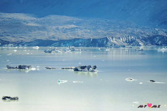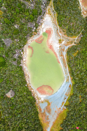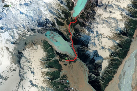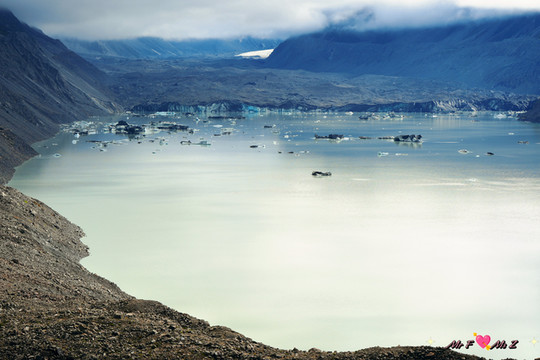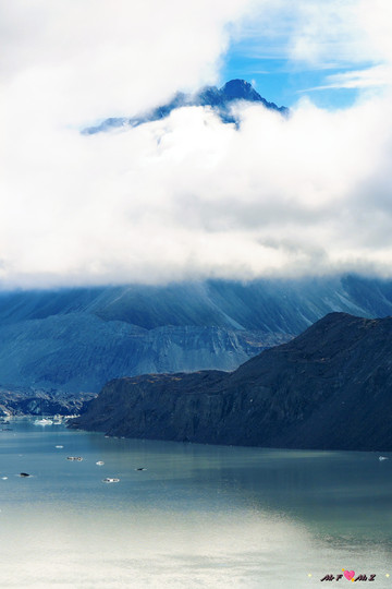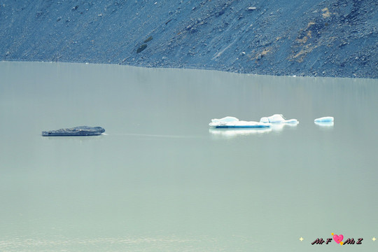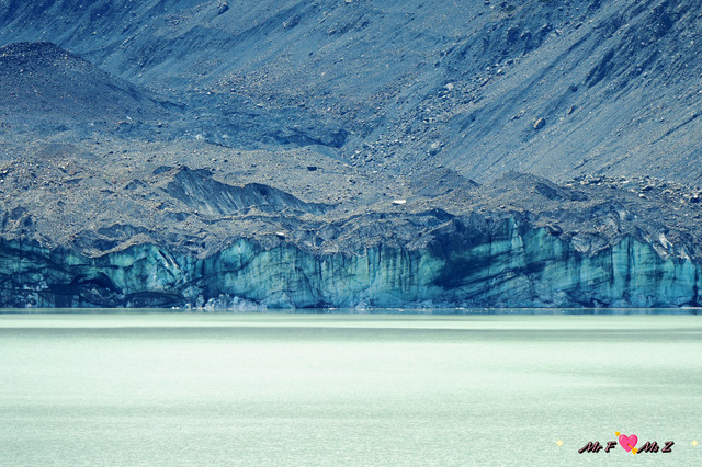 从上帝的视角俯瞰,最引人注目的莫过于湖岸边那抹迷人的碧绿色。那是光线穿过悬浮在水中的细小岩石颗粒,经过折射后形成的色彩。大自然亲手调制的翡翠颜料,为这片湖水增添了一抹神秘与灵动。